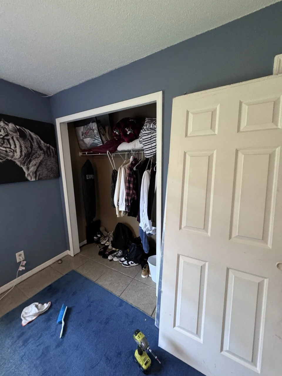 Instalamos puertas corredizas con espejo en un armario del área de Orlando, mejorando el uso del espacio y dando un toque moderno al dormitorio. Servicio profesional, rápido y limpio por parte del equipo HandyRex.
