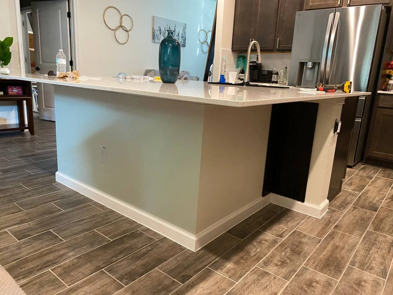 This project focused on upgrading a standard kitchen island into a strong visual centerpiece.